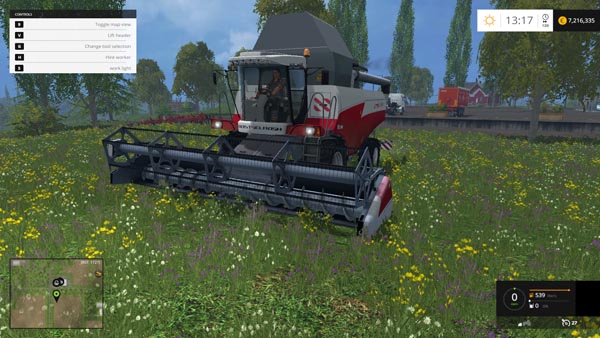 Good physics. Hopper capacity 9 m. The straw fits in roll and scattered across the field. Opens the door, the hopper lid. Animated driver. Animated staircase. Runs work light, light on the tube. Washable. Cutter, Power Stream 700 comes bundled width of 7 meters.