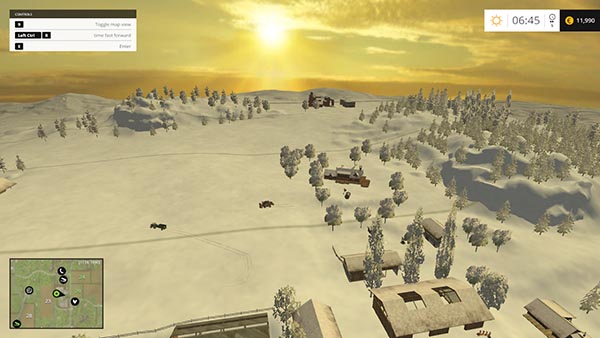 Farming Simualtor 2015. Has snow mod for snow covered roads, roofs and trees download a snow plow if you want to play in the snow her’s the link.