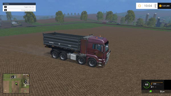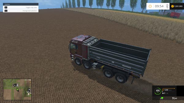 Мод “Brantner E 8041 под сыпучие материалы для MAN TGS 41.480 SZM 8×8 v1.2” для FS 2015 mods – Объём 33000 литров, перевозит все стандартные культуры и травы, трёхсторонняя выгрузка, выбор цвета, моется. Исправления: 1.1 добавление normal текстур на большинство деталей, исправлена загрузка относительно оригинала. 1.2 корректировка положения седла, изменение/добавление светотехники.