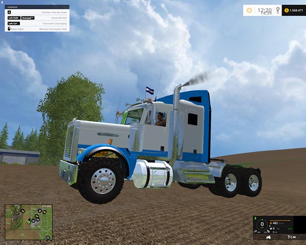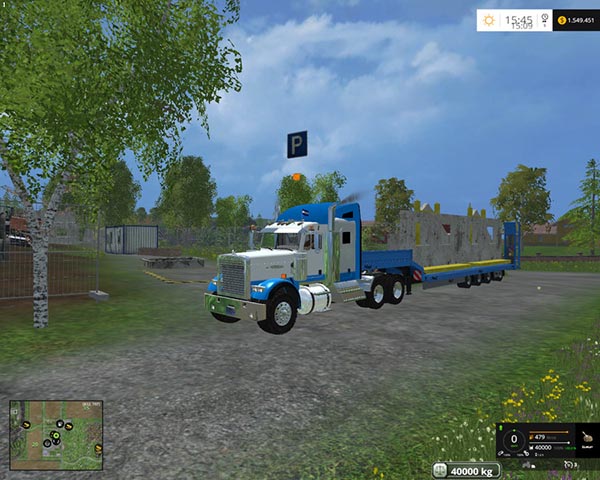 I offer the Freightliner FLD 13 for Farming Simulator 2015 – Max. power – 600 HP, max. speed – 89 km / h. The speedometer, tachometer, fuel gauge, thermometer, mirror, tow, dust, traces, animation flag. Wash the wheels.