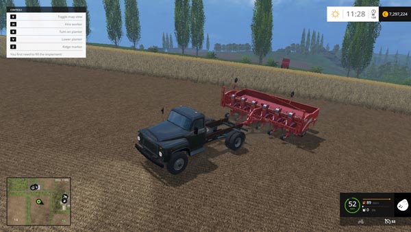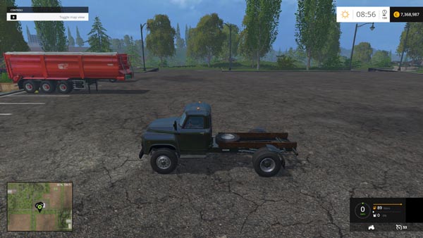 Мод “GAZ 53 Pack v1.0” для Farming Simulator 2015 – В мод входит автомобиль ГАЗ-53 120 л.с, 52 км/ч, светотехника, индикаторы фар, поворотников, тормозов, колёсная пыль, дорожные следы, выбор цвета, моется. И прицепляемый кузов на 6500 л, перевозит: пшеница, ячмень, рапс, кукуруза, сахарная свекла, картофель, трава, солома пшеницы, ячменя, сечка, силос, фураж, кормосмесь, щепа, навоз, выбор цвета, моется.