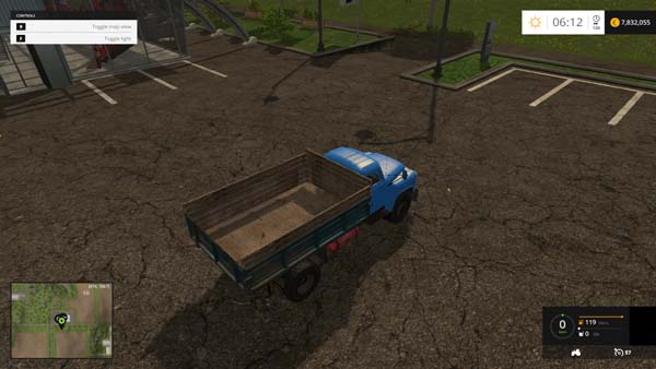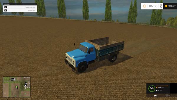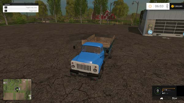 Speed 57 km / h. Lighting, working mirrors, tow hitch, dust from the wheels, leaves traces.