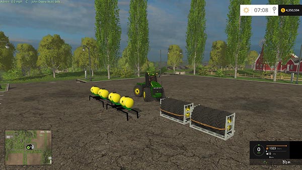 I have added selectable wheels (singles to terra on key 4) and buyable front saddle tanks, duals and triple wheels. Key 4 changes between single wheels (default) and terra wheels. Be sure to have singles on when buying duals or trips. Key M adds/removes buyable wheels. Buyable tanks (under “sprayers” category) are attachable to the front and use the “teleHandler” joint. Two different tanks are available: one only adds extra fertilizer capacity and the other functions as a sprayer optimized for the 22m JD 1890 seeder. Also, I Americanized it by removing all the Euro signage. Working mirrors, lights and fully washable. Pulls like any default tractor. Fixed miscolored stripe on back of cab (thx killerrf for the know-how). Everything works per my testing but please leave any issues and I will try to fix.