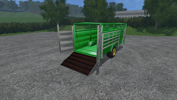This is the Joskin Betimax R 6000 Livestock Trailer. It is a smaller trailer capable of transporting 8 cattle, 14 sheep or pigs and up to 60 chickens.