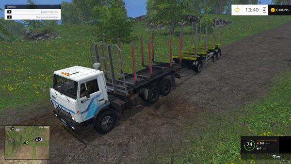 Мод “КамАЗ 53212” для Farming Simulator 2015 – В паке КамАЗ и два прицепа для перевозки леса.