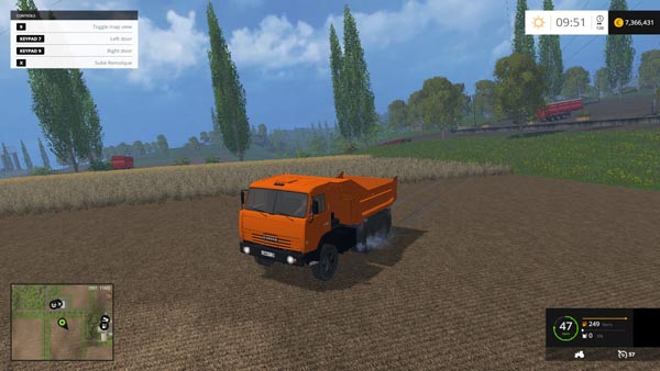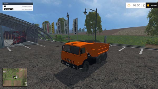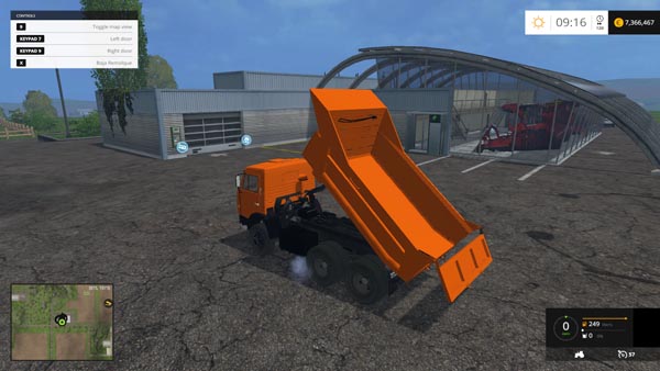 Truck traffic in the course of exhibits traces of dust and leaves. The body carries the standard loads fs 15, as well as sand. Block of wood is not able to carry. He has a tow hitch and forced lifting body. It has animated dashboard, lighting and dynamic smoke.