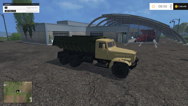 Мод “КрАЗ 256” для Farming Simulator 2015 – От автора: самосвал с обновлёнными видами перевозимых грузов: можно использовать на картах где установлен бетонный завод. Можно возить песок и гравий из карьеров на завод, а так же удобрения насыпом со станции на склад на карте Балдейкино. Возит и стандартные культуры с семечкой, но делал его специально для карьеров. Загонять под погрузку можно и не по зеркалам – есть камера “встать на подножку”. Характеристики почти не менял, так что писать о них нет смысла.