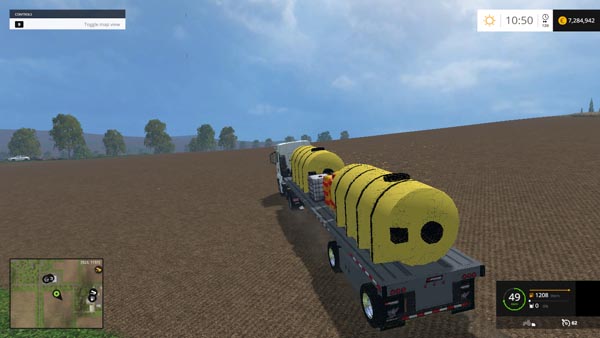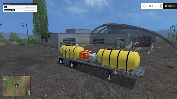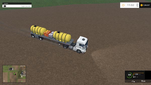 Semi-trailer with barrels for transporting fertilizers. Capacity: 18000 liters. Lighting, leaving traces of dust from the wheels.