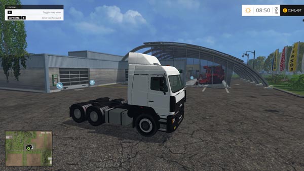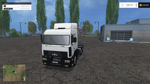 Мод “МАЗ 6430” для Farming Simulator 2015 – Пыль из под колёс, следы,рабочая светотехника, анимирована приборная панель, анимированный водитель. Максимальная скорость 80 км/ч. Пачкается.