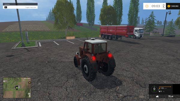 Интересно, что разработчики решили… выбросить двери, так что кататься на МТЗ-52 в Фермере Симулятор 2015 вы будете с ветерком. Общее впечатление от трактора это не портит. Цвет традиционный темно-красный, даже бурый. Светотехника в порядке, не подкопаешься. Там, где проехал МТЗ-52, всегда остаются четкие, ровные следы от колес, может подниматься пыль.