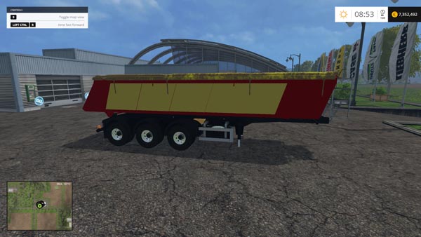 offers you the trailer Schmitz Fs 13 that been updated and modified for FS15, the PODES transporting wheat rape maize silage chaff potato cement concrete gravel sand woodchips.