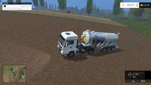 Мод “Tanque Sisterna Fuel v1.0” для Farming Simulator 2015 – Светотехника, уровень заполненности, башмаки, поворотные мосты, прицепное, пыль, следы. Моется. Перевозит топливо (40000 л).