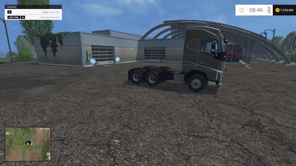 Мод “Volvo FH16 2012 v1.0” для Farming Simulator 2015 – 750 лс, 72 км/ч. Светотехника, спидометр, тахометр, колёсная пыль, дорожные следы. Моется.