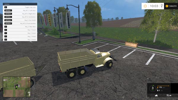 Мод “ЗиЛ 157 & GKB817” для Farming Simulator 2015 – Светотехника, зеркала, спидометр, тахометр, оставляет следы на дороге, пыль из под колес, открываются двери и капот, тент убирается на ЗиЛе и прицепе. Вместимость 5 и 8 тонн, перевозит: wheat, rape, maize, barley, chaff, grass, potato, sugarBeet sand sunflower.
